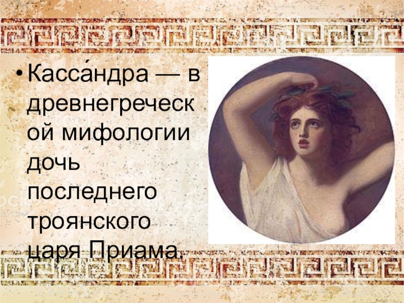 Слайд 13Касса́ндра — в древнегреческой мифологии дочь последнего троянского царя Приама.