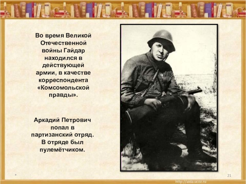 Аркадий Петрович попал в партизанский отряд. В отряде был пулемётчиком.
