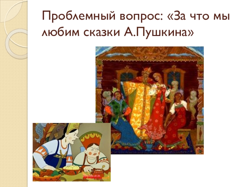 Слайд 2Проблемный вопрос: «За что мы любим сказки А.Пушкина»