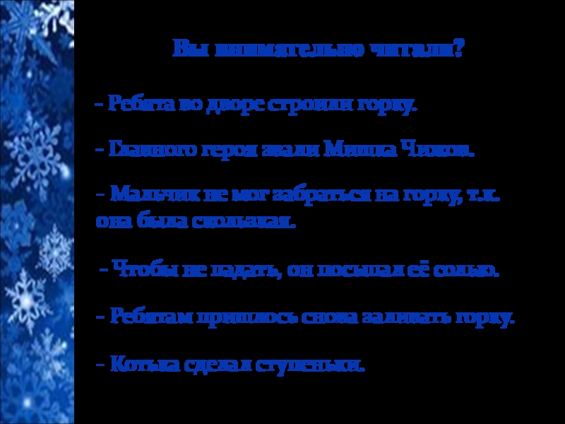 - Мальчик не мог забраться на горку, т.к. она была скользкая.