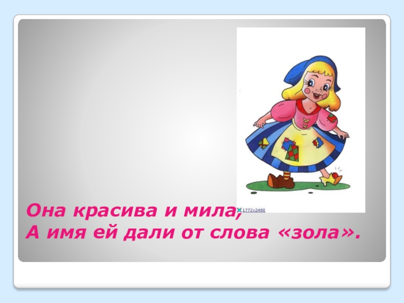 Слайд 15Она красива и мила, А имя ей дали от слова «зола».