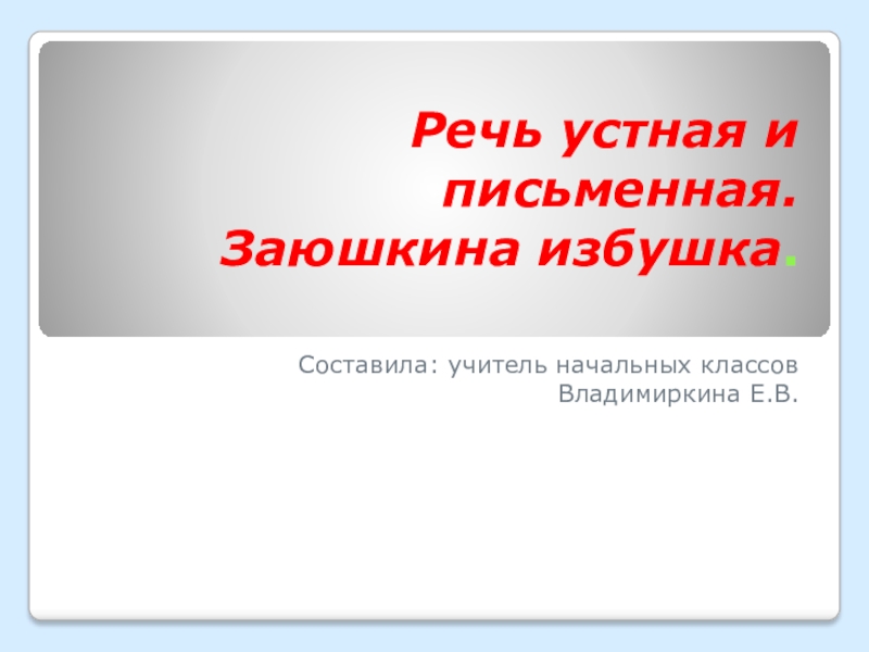 Речь устная и письменная.  Заюшкина избушка.Составила: учитель начальных классовВладимиркина Е.В.