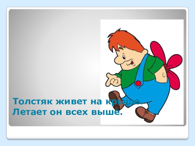 Слайд 14Толстяк живет на крыше. Летает он всех выше.