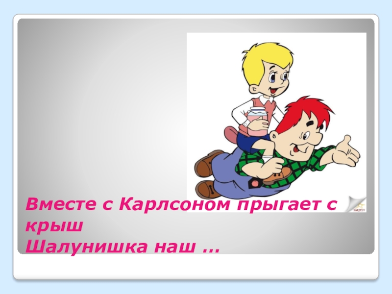 Слайд 16Вместе с Карлсоном прыгает с крыш Шалунишка наш …