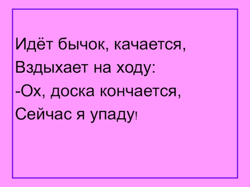 Идёт бычок, качается,Вздыхает на ходу:-Ох, доска кончается,Сейчас я упаду!