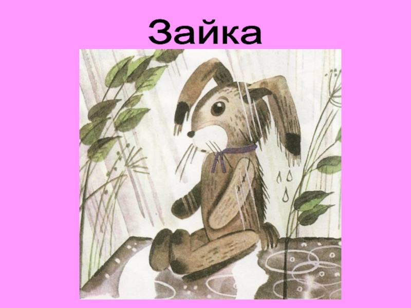 Зайку бросила хозяйка – Под дождём остался зайка.Со скамейки слезть не смог,Весь до ниточки промок.