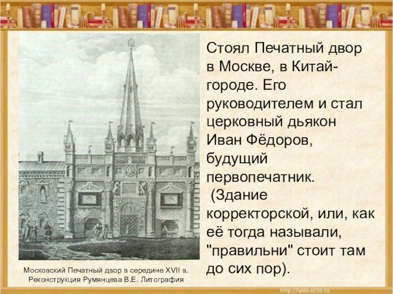 Первопечатник Иван Фёдоров (гравюра В. Е.Перевальского)