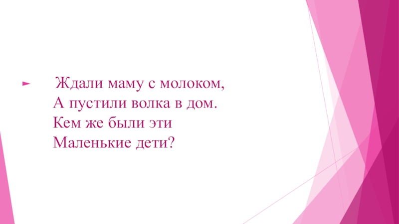 Ждали маму с молоком,     А пустили волка в дом.     Кем же были эти     Маленькие дети?