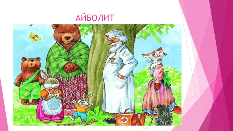 Слайд 10 Лечит маленьких детей,     Лечит птичек и зверей.     Сквозь очки свои глядит     Добрый