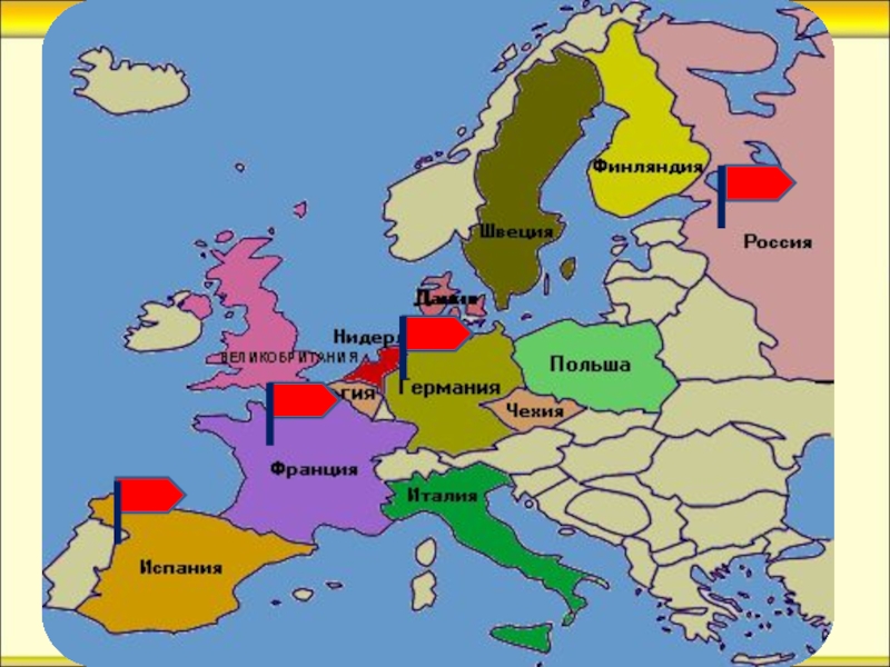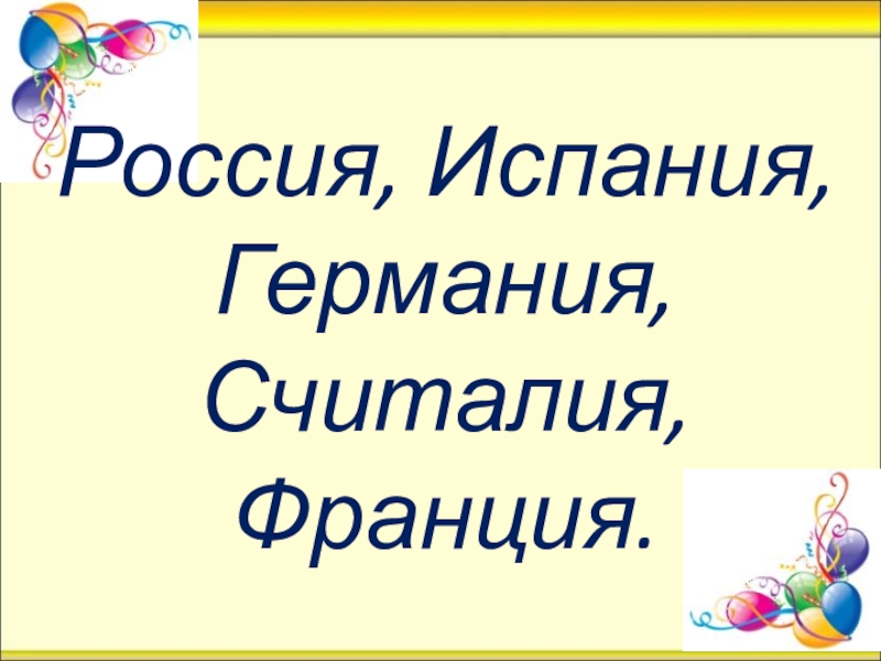 Слайд 2Россия, Испания, Германия, Считалия, Франция.