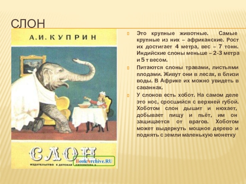 Презентация, доклад по литературному чтению на тему А.И Куприн Слон