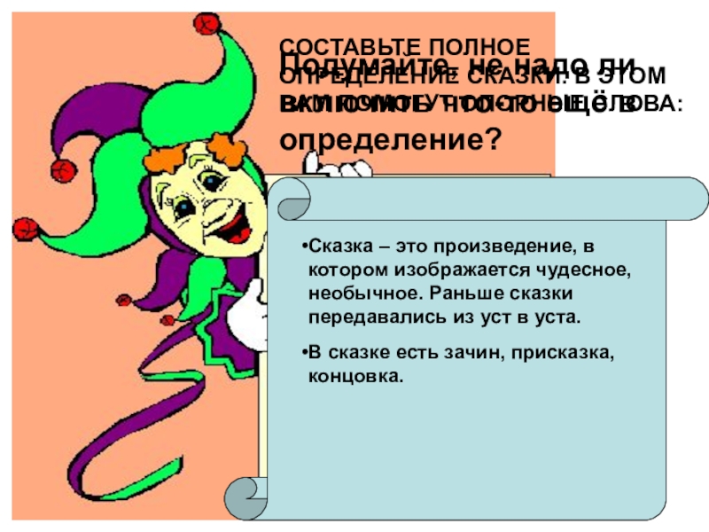 Сказка – это произведение, в котором изображается чудесное, необычное. Раньше сказки передавались из уст в уста.