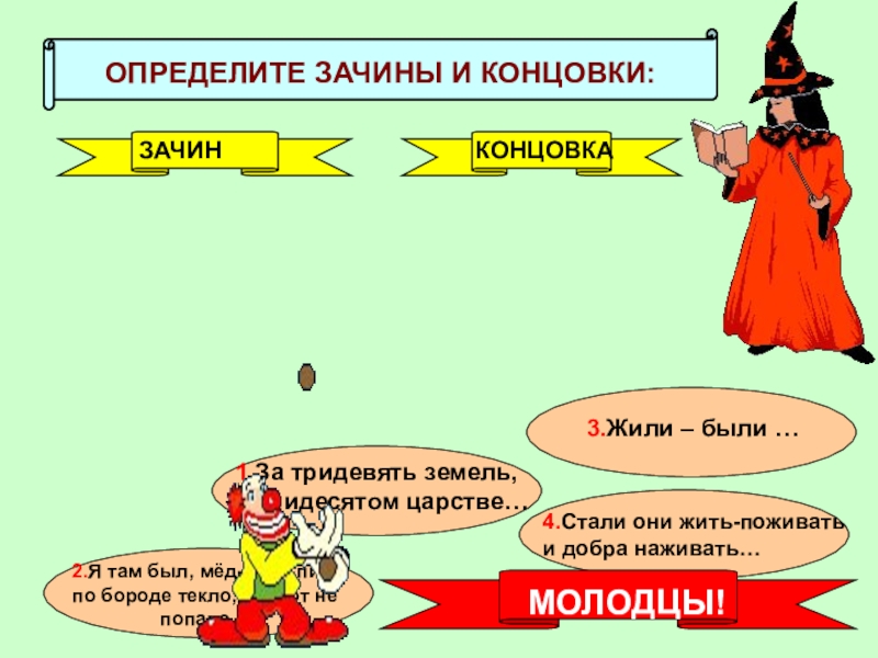 В сказке есть зачин, присказка, концовка.