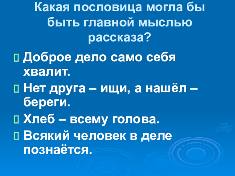 Слайд 8Какая пословица могла бы быть главной мыслью рассказа?