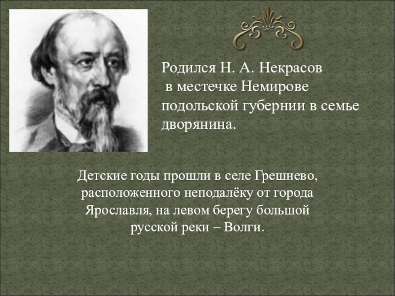 Детские годы прошли в селе Грешнево, расположенного неподалёку от города Ярославля, на левом берегу большой русской реки – Волги.