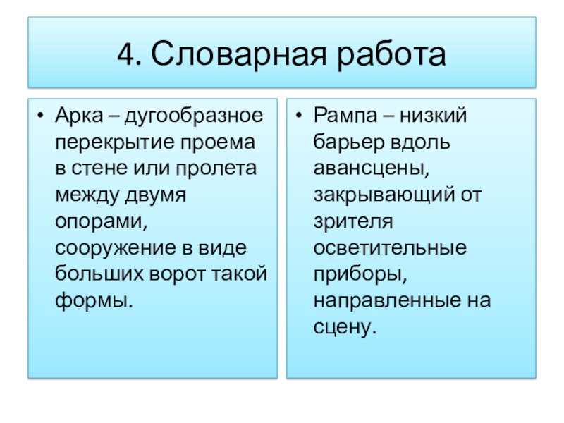 Рампа – низкий барьер вдоль авансцены, закрывающий от зрителя осветительные приборы, направленные на сцену.