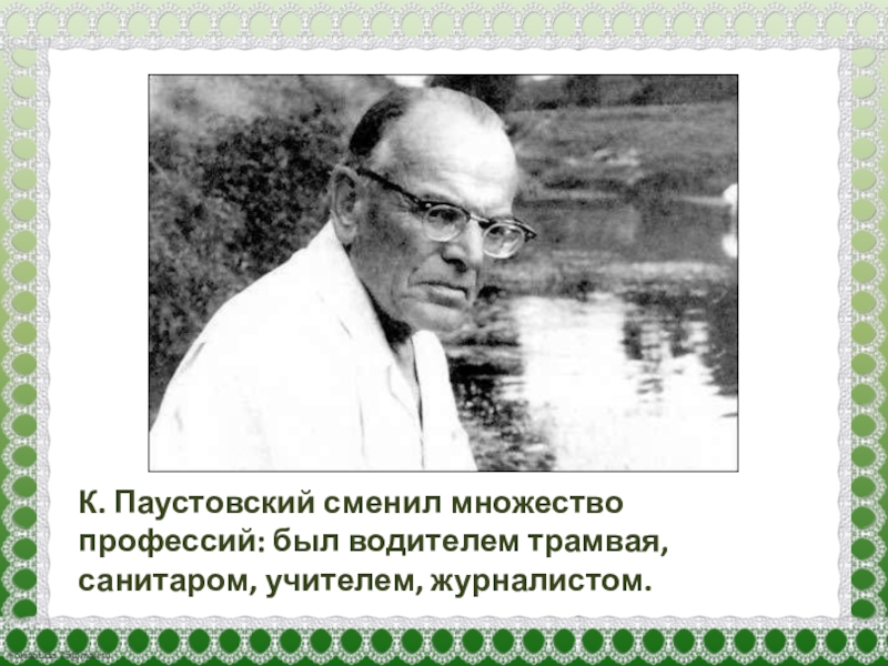 Слайд 6К. Паустовский сменил множество профессий: был водителем трамвая, санитаром, учителем, журналистом.