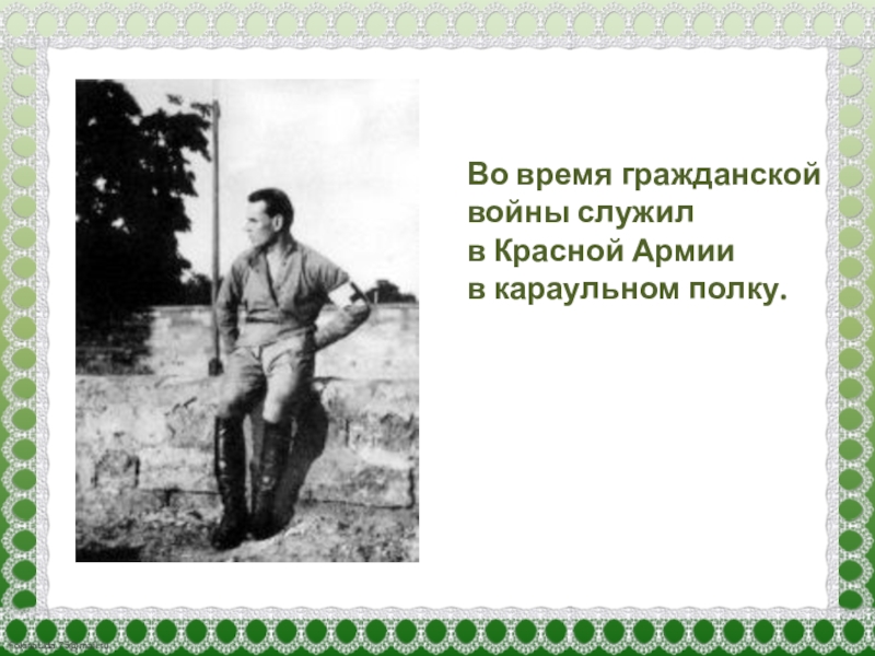 Во время гражданской войны служил в Красной Армии в караульном полку.
