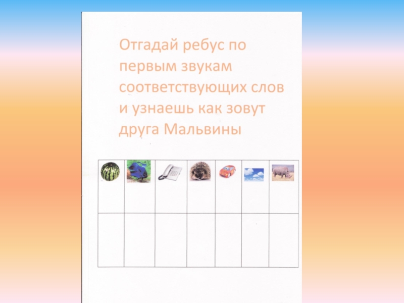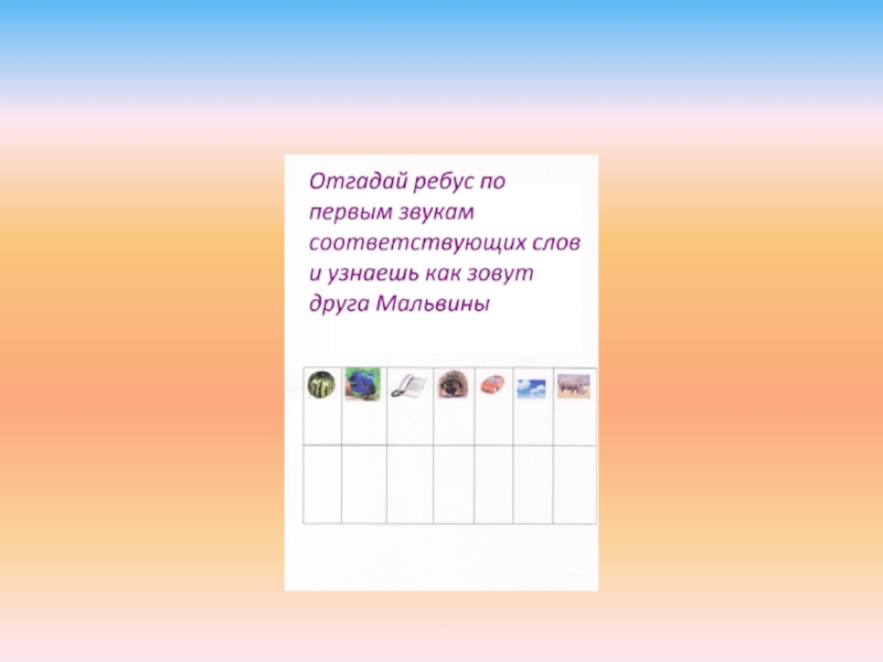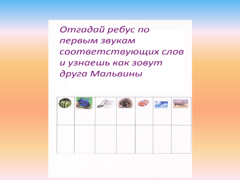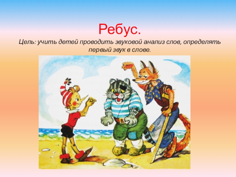 Цель: учить детей проводить звуковой анализ слов, определять первый звук в