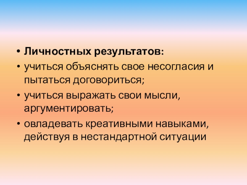Личностных результатов: