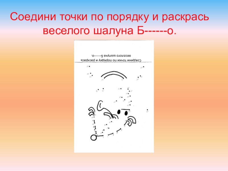 Слайд 24Соедини точки по порядку и раскрась веселого шалуна Б------о.