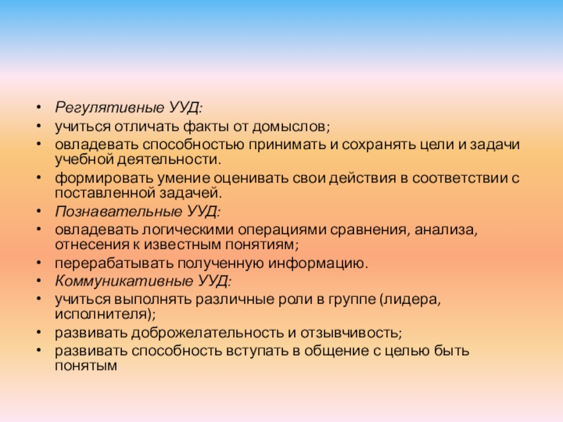 Регулятивные УУД: