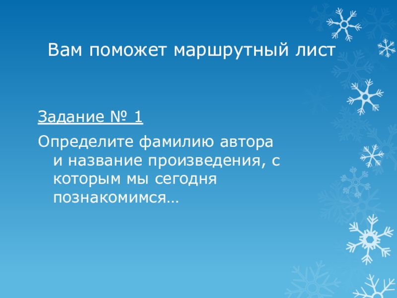 Вам поможет маршрутный листЗадание № 1Определите фамилию автора и название произведения, с которым мы сегодня познакомимся…
