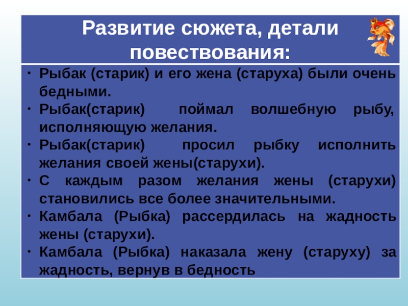 Вывод: «Сказка о рыбаке и рыбке»