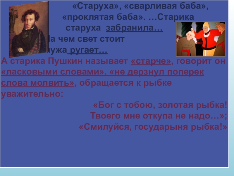 рыбаке и рыбке» А.С. Пушкина