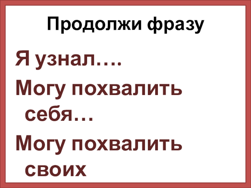 Продолжи фразуЯ узнал….Могу похвалить себя…Могу похвалить своих