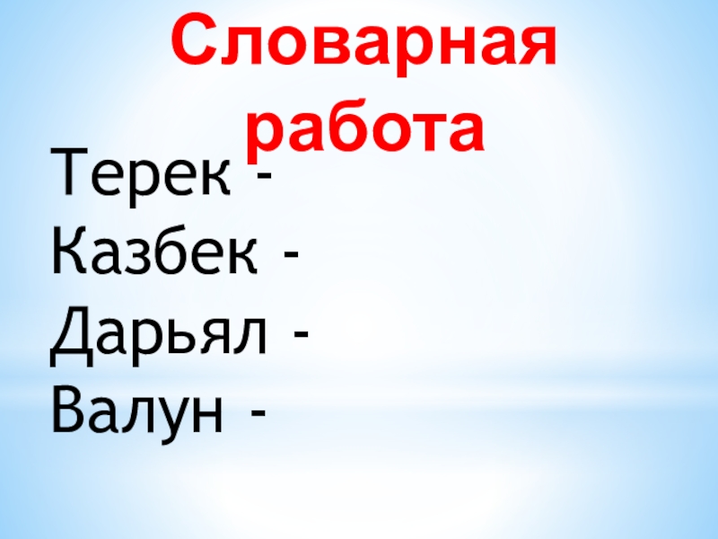 Словарная работаТерек - Казбек -Дарьял -Валун -