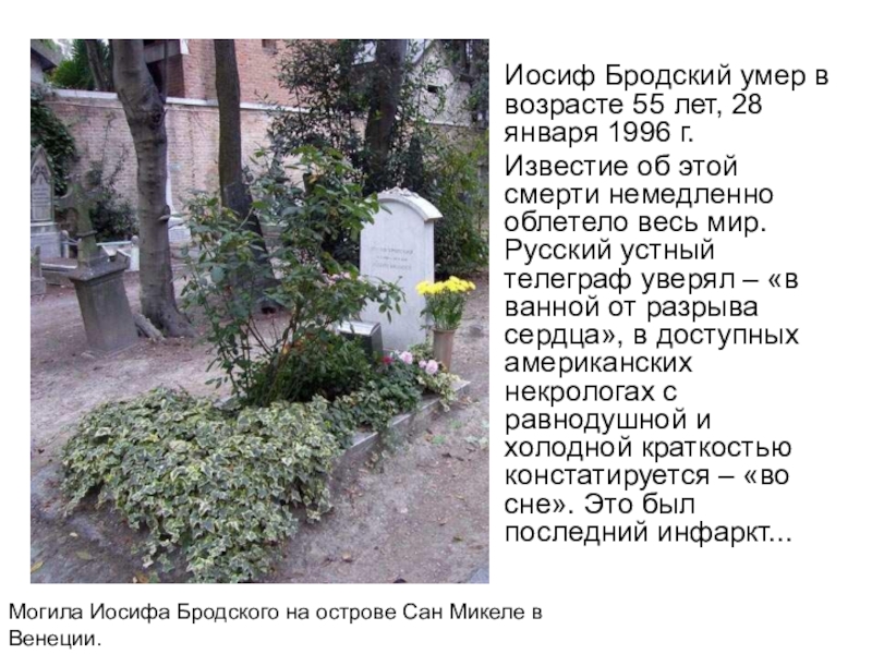 Могила Иосифа Бродского на острове Сан Микеле в Венеции.