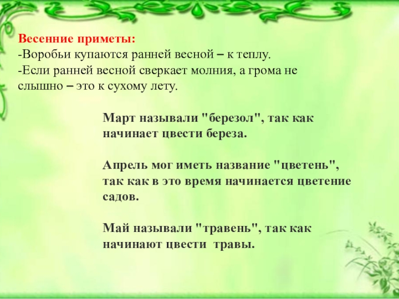 Март называли "березол", так как начинает цвести береза.