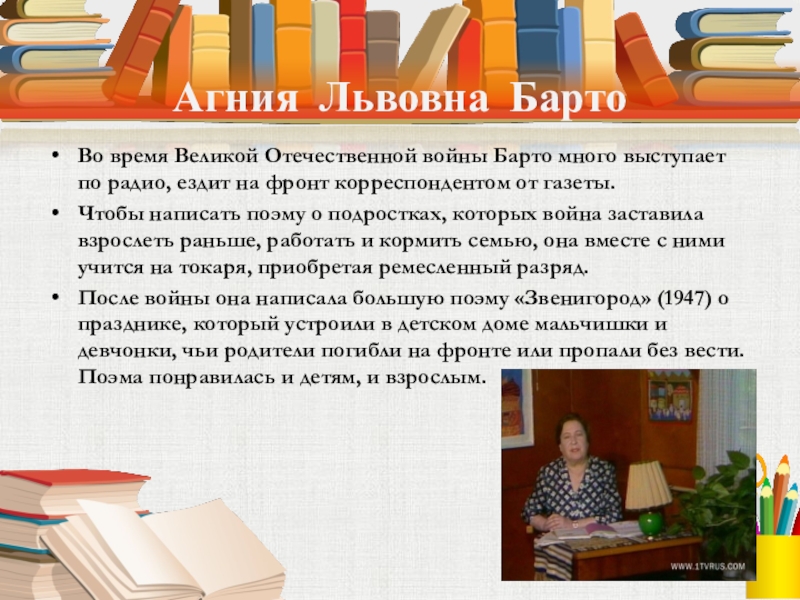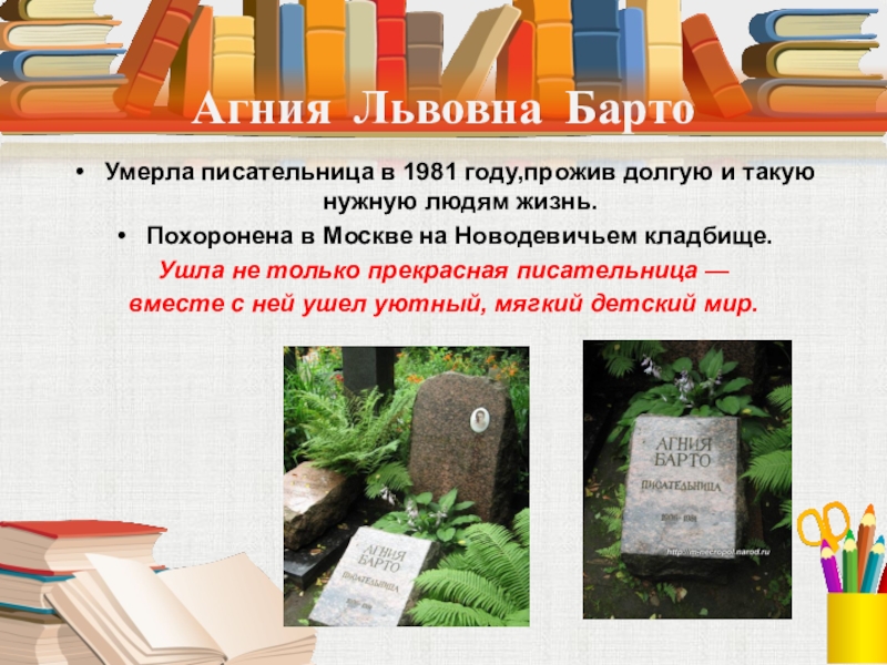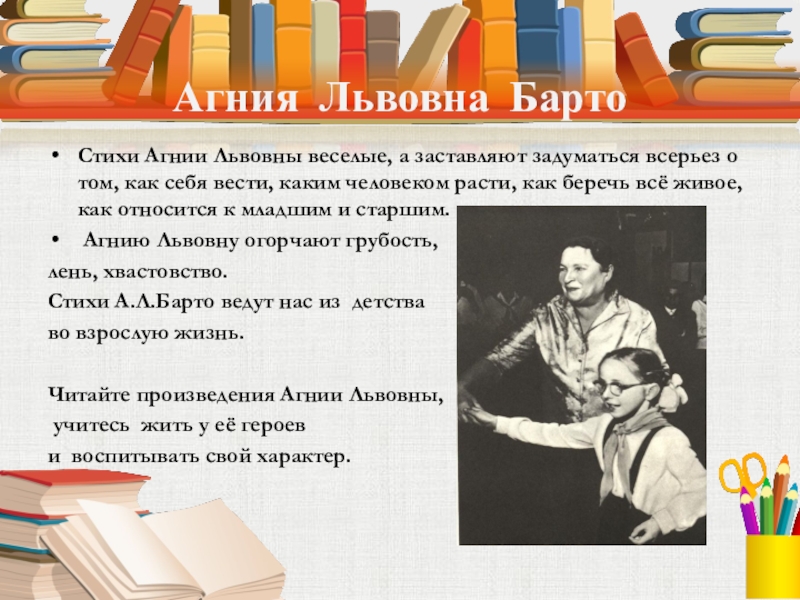 Стихи Барто были первыми и для нас, мы читаем их своим детям, а спустя годы они будут первыми воспоминаниями наших внуков...