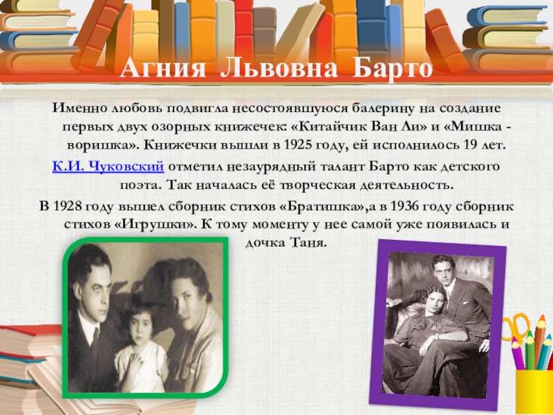 двух озорных книжечек: «Китайчик Ван Ли» и «Мишка - воришка». Книжечки вышли в 1925 году, ей исполнилось 19 лет.