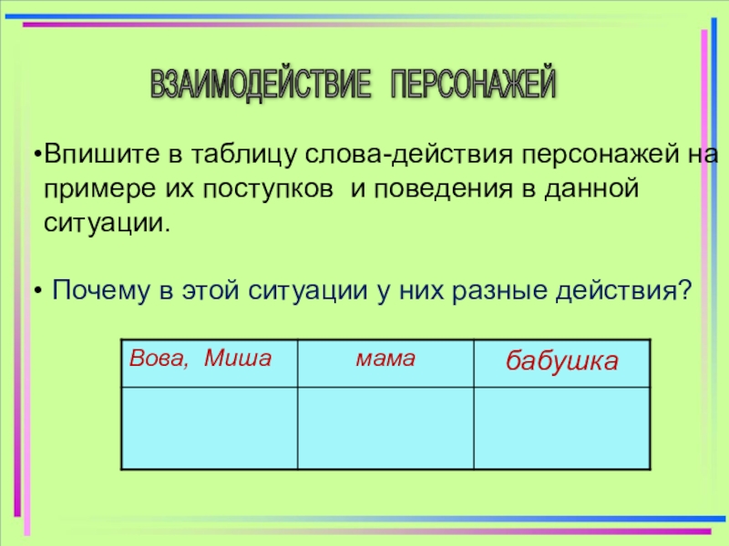 ВЗАИМОДЕЙСТВИЕ ПЕРСОНАЖЕЙ