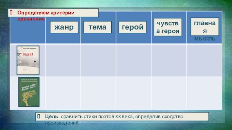 Цель: сравнить стихи поэтов XX века, определив сходство произведений