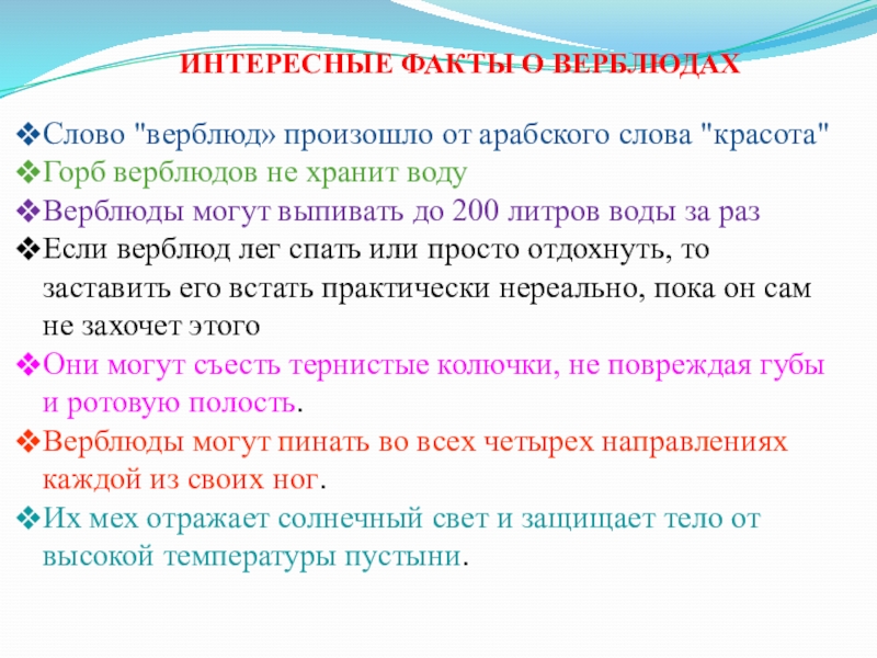ИНТЕРЕСНЫЕ ФАКТЫ О ВЕРБЛЮДАХ
