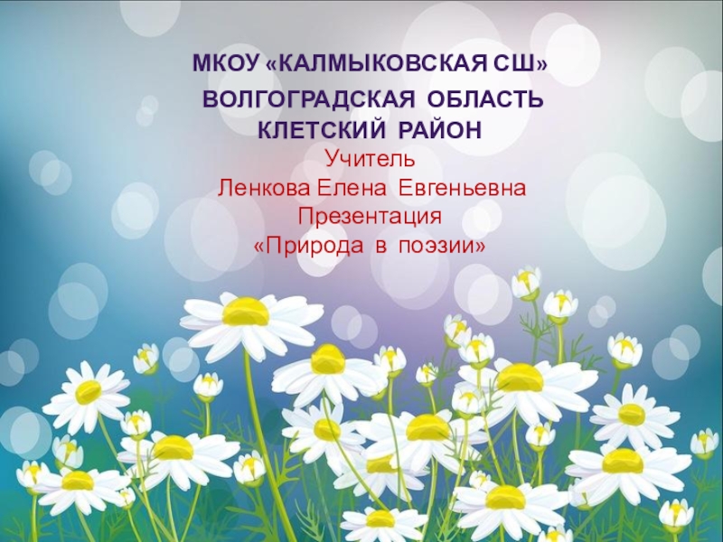 МКОУ «Калмыковская СШ» Волгоградская область Клетский районУчитель Ленкова Елена ЕвгеньевнаПрезентация «Природа в поэзии»