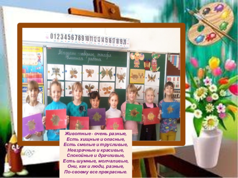 Животные - очень разные, Есть хищные и опасные, Есть смелые и трусливые, Невзрачные и красивые, Спокойные и