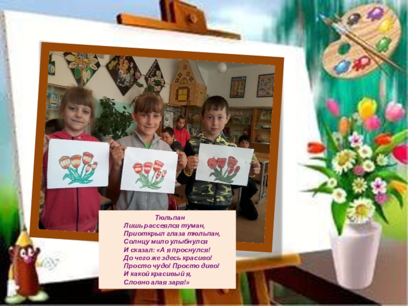 ТюльпанЛишь рассеялся туман,Приоткрыл глаза тюльпан,Солнцу мило улыбнулсяИ