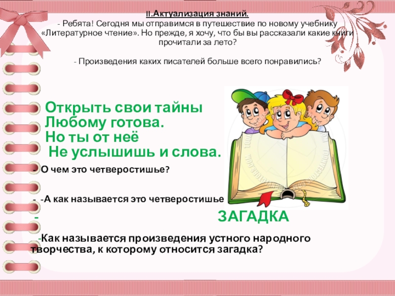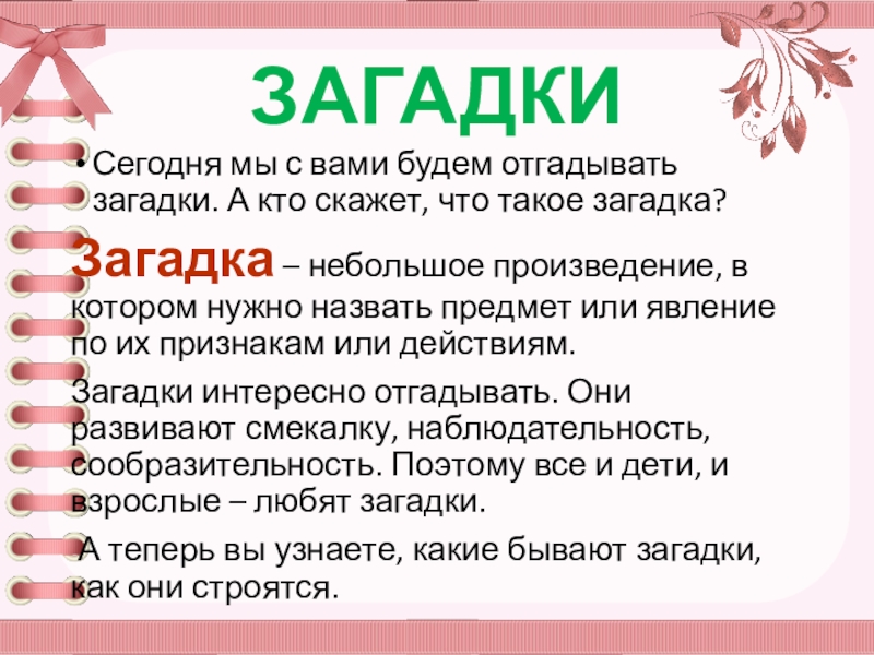-Как называется произведения устного народного творчества, к которому относится загадка?