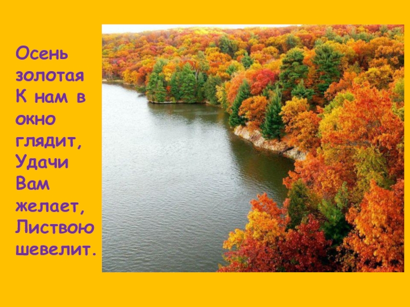 Осень золотая  К нам в окно глядит, Удачи Вам желает, Листвою шевелит.