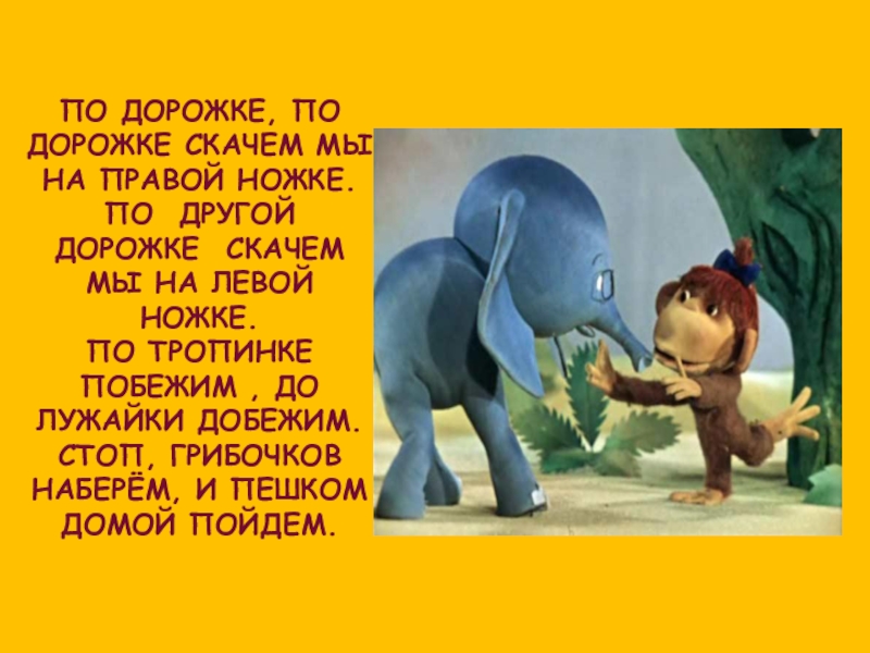 ПО ДОРОЖКЕ, ПО ДОРОЖКЕ СКАЧЕМ МЫ НА ПРАВОЙ НОЖКЕ. ПО ДРУГОЙ ДОРОЖКЕ  СКАЧЕМ МЫ