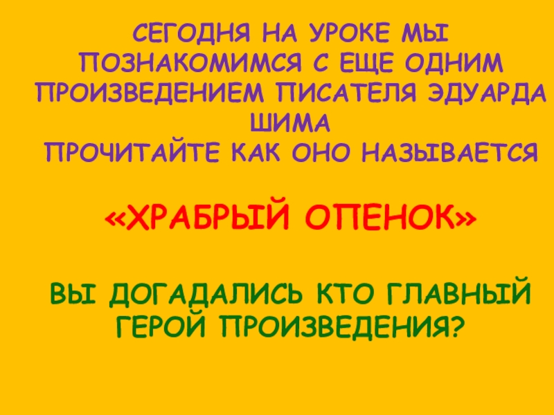 Презентация, доклад по литературному чтению на тему Э.ШИМ ХРАБРЫЙ ОПЕНОК