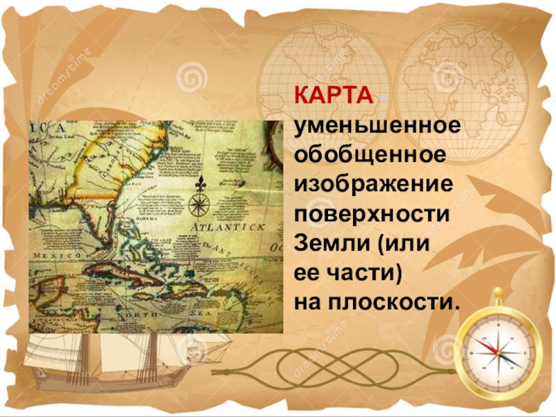 КАРТА - уменьшенное обобщенное изображение поверхности Земли (или ее части) на плоскости.