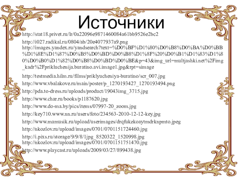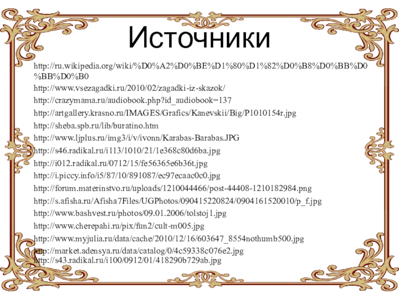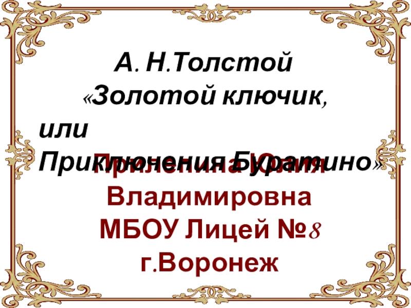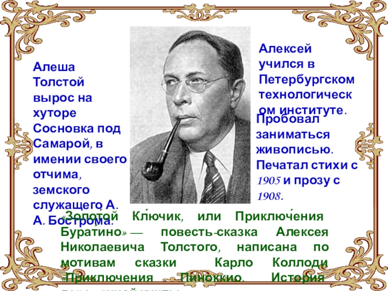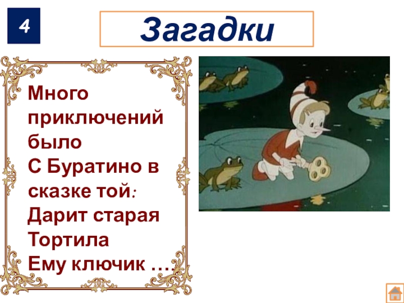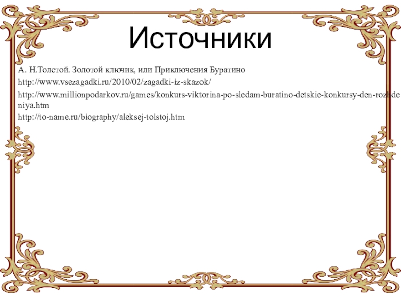 «Золот́ой Кл́ючик, или Приключ́ения Бурат́ино» — повесть-сказка Алексея Николаевича Толстого, написана по мотивам сказки Карло Коллоди «Приключения Пиноккио. История деревянной куклы».