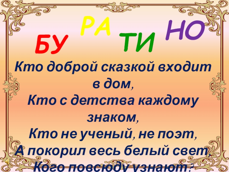 Это сайт презентаций, где можно хранить и обмениваться своими презентациями, докладами, проектами, шаблонами в формате PowerPoint с другими пользователями. Мы помогаем школьникам, студентам, учителям, преподавателям хранить и обмениваться учебными материалами.