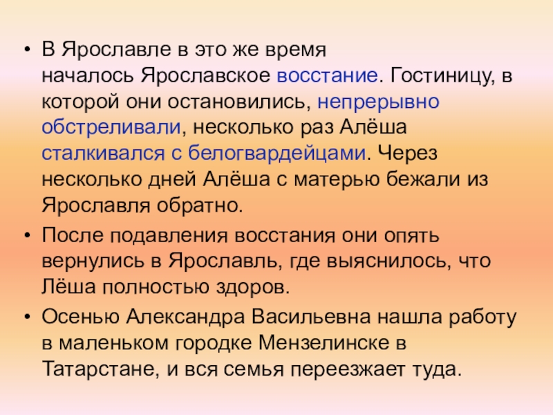 После подавления восстания они опять вернулись в Ярославль, где выяснилось, что Лёша полностью здоров.