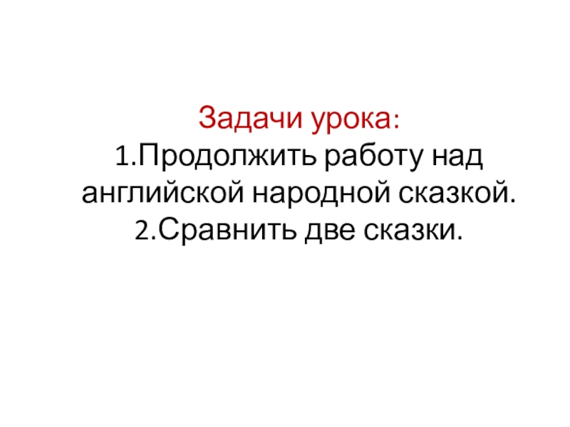 Слайд 3 Задачи урока: 1.Продолжить работу над английской народной сказкой. 2.Сравнить две сказки.